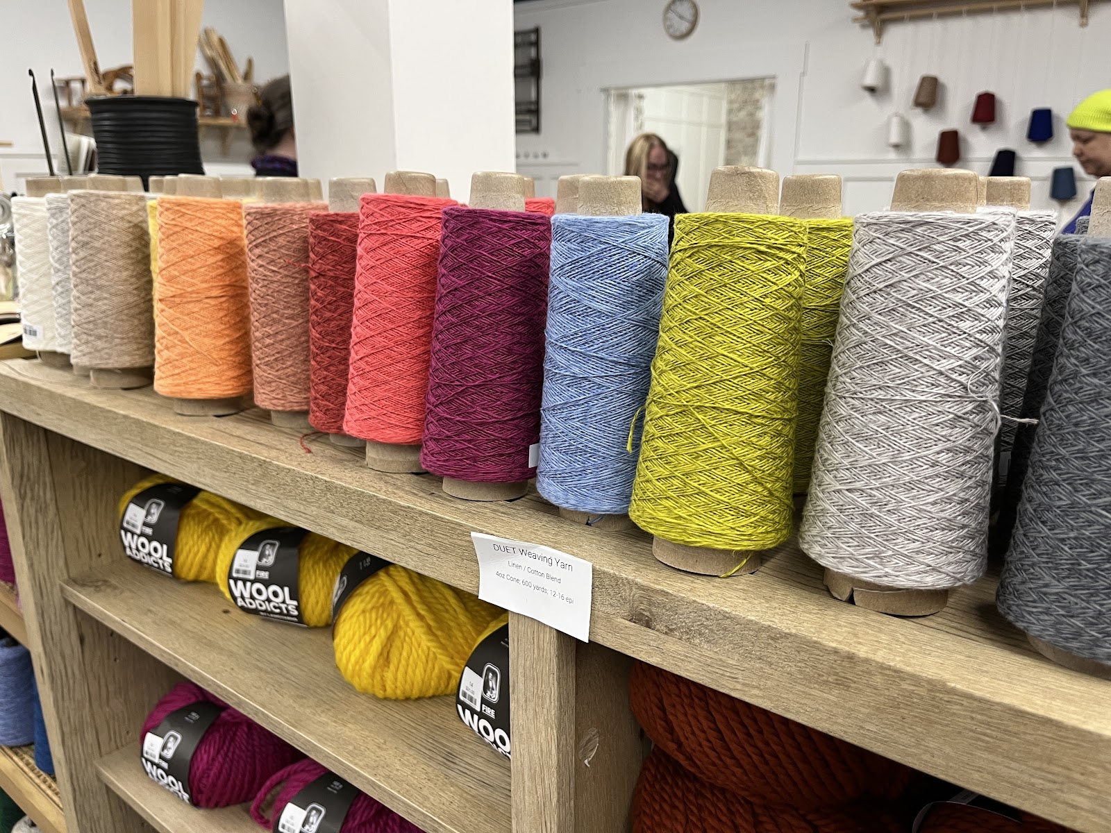 Our last day in town found us at the local yarn store, Fiber Circle Studio. This was a great space with lot of beautiful things. I took these pictures below for my friend Sam who was interested in what kinds of options there were for loom-compatible yarn. The colors are just gorgeous.